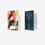 I block notes solidali a righe con copertina rigida in 2 grafiche disponibili e penna della Fondazione, sono venduti in coppia, abbinando grafiche uguali o diverse.
